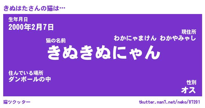 | ファンタジー風あだ名 | 『キヌフェル』『エターナルキヌハター』 |