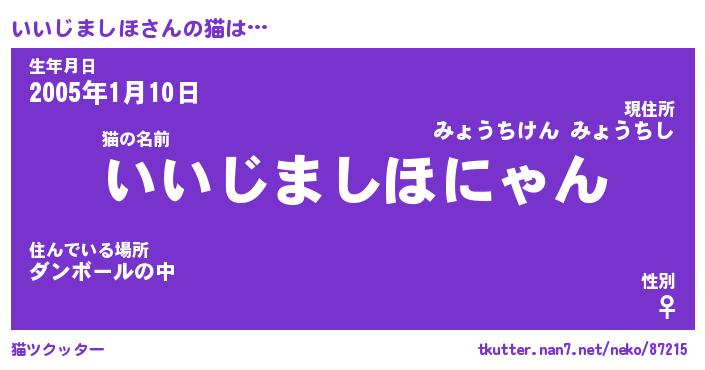 | 欧米人風あだ名 | 『マイケルいいじましほ』 |