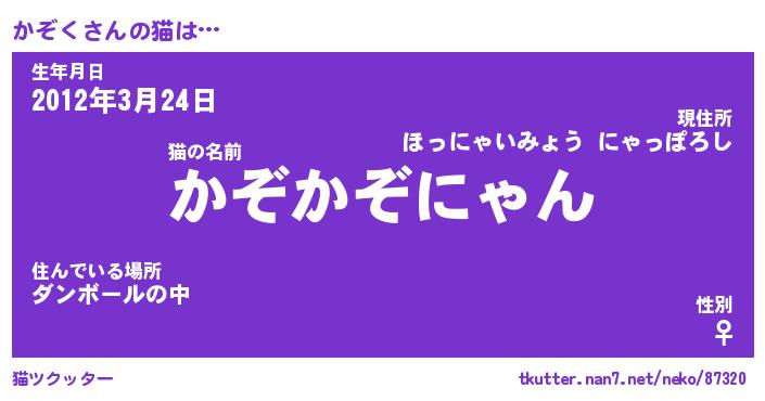 | ファンタジー風あだ名 | 『カゾフェル』『エターナルカゾクー』 |