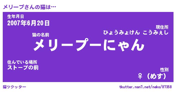 | ヘコむあだ名 | 『メリにゅー』『なまこ酢』『メリを』 |