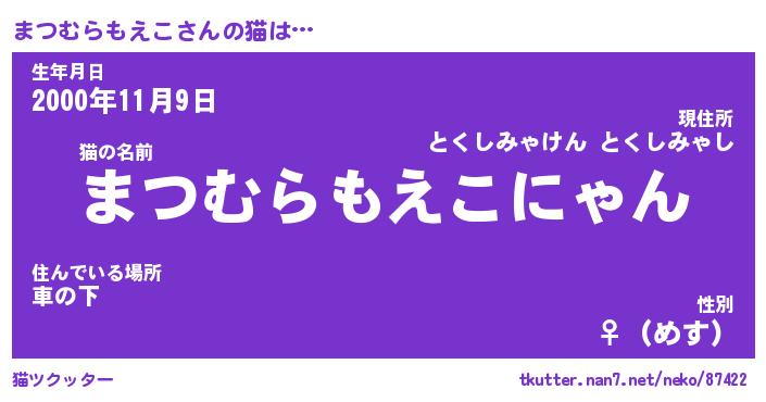 | 欧米人風あだ名 | 『マイケルまつむらもえこ』 |