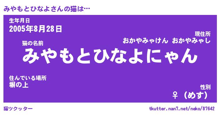 | 2回繰り返すあだ名 | 『みやみや』『みみやや』『にたにた』 |