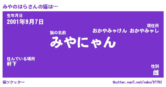 | 2回繰り返すあだ名 | 『みやみや』『みみやや』『ぷかぷか』 |