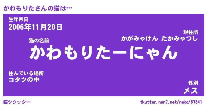 | ファンタジー風あだ名 | 『カワフェル』『エターナルカワモリター』 |