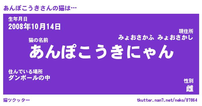 | 男性向けラノベタイトル風あだ名 | 『あんぽこうきの憂鬱』 |