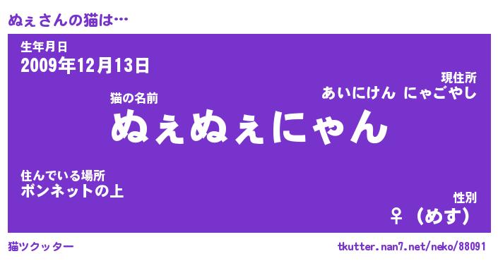 | 2回繰り返すあだ名 | 『ぬぇぬぇ』『ぬぬぇぇ』『かんかん』 |