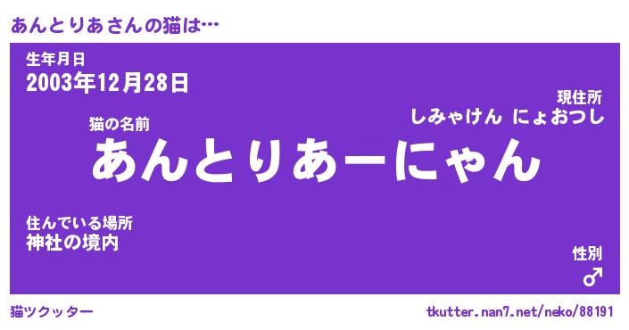 | 生年月日? …「くろねこ」 | 8月01日 10:16 |