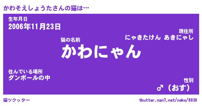 | ファンタジー風あだ名 | 『カワフェル』『ファントムカワス』 |