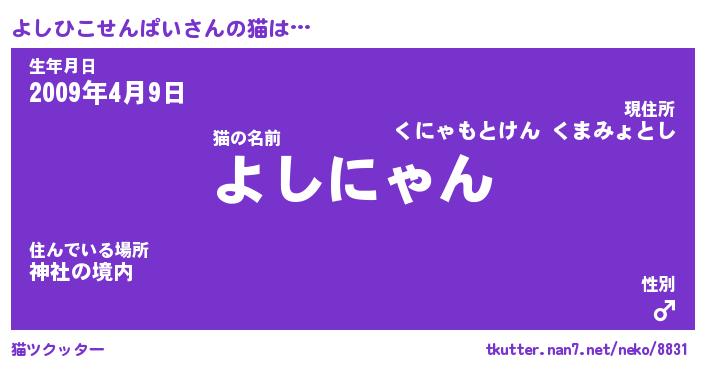| ポケモン風あだ名 | 『ヨシチュウ』『ヨシヒダネ』 |