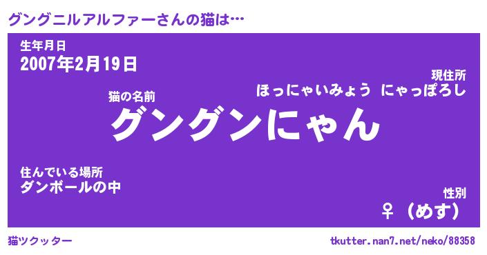 | ツイッター | グングニルアルファーさんのツイッターID『dendenmushi_idle』 |