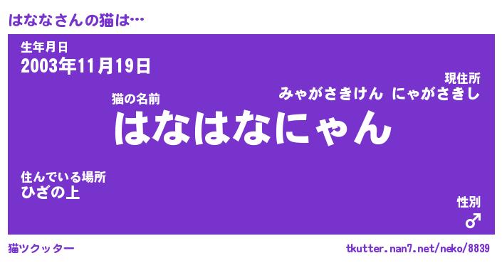 | ツイッター | はななさんのツイッターID『namakemono_man』 |