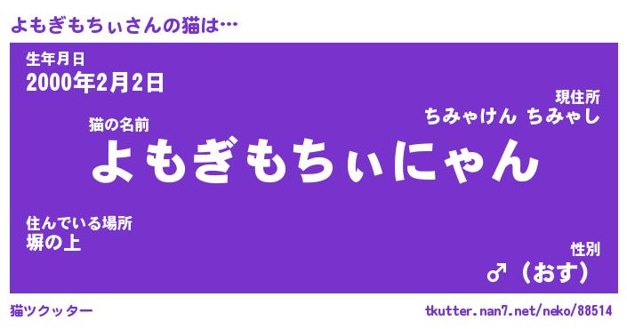 | 欧米人風あだ名 | 『マイケルよもぎもちぃ』 |