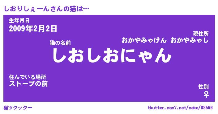| ツイッター | しおりしぇーんさんのツイッターID『namakemono_nyan』 |
