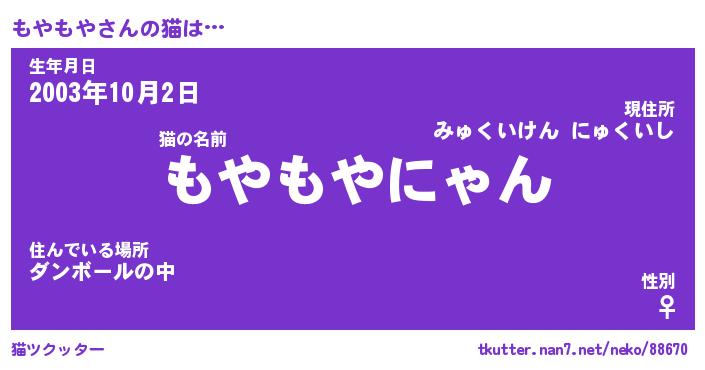 | ヘコむあだ名 | 『もやにゅー』『牛乳』『もやぷりん』 |