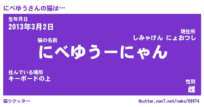 | 意味不明あだ名 | 『ペロリンにべゆう』『永久保存にべゆう』 |