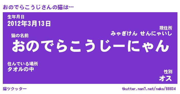 | ツイッター | おのでらこうじさんのツイッターID『namakemono_kun』 |