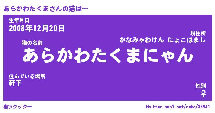 | 女子向けラノベタイトル風あだ名 | 『(仮)あらかわたくまのやんごとなき事情』 |
