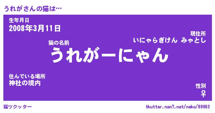 | ポケモン風あだ名 | 『ウレチュウ』『ウレガダネ』 |