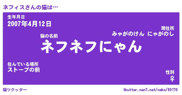 | 2回繰り返すあだ名 | 『ネフネフ』『ネネフフ』『べとべと』 |