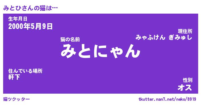 | 生年月日? …「くろねこ」 | 8月01日 10:16 |