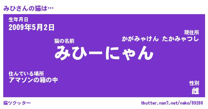 | ヘコむあだ名 | 『みひもー』『つくし』『みひお』 |