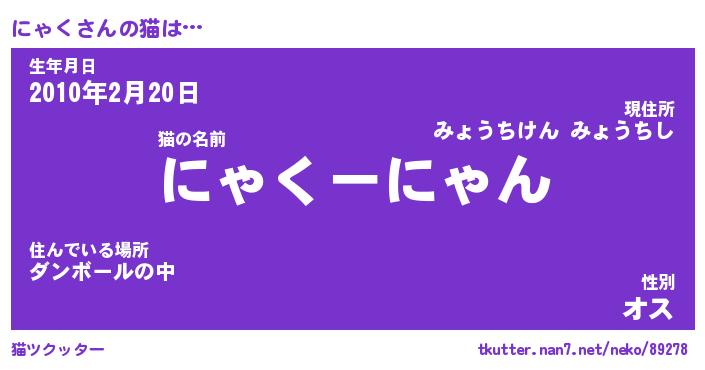 | ヒーロー風カッコイイあだ名 | 『スーパーニャク』『ウルトラにゃくマン』 |