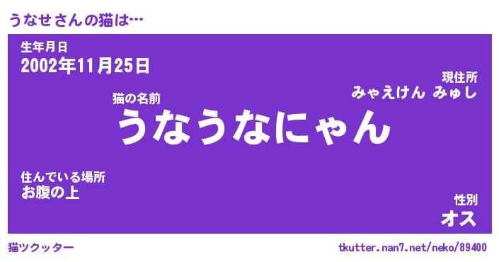 | ポケモン風あだ名 | 『ウナチュウ』『ウナセダネ』 |
