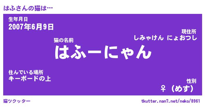 | 生年月日? …「くろねこ」 | 8月01日 10:16 |