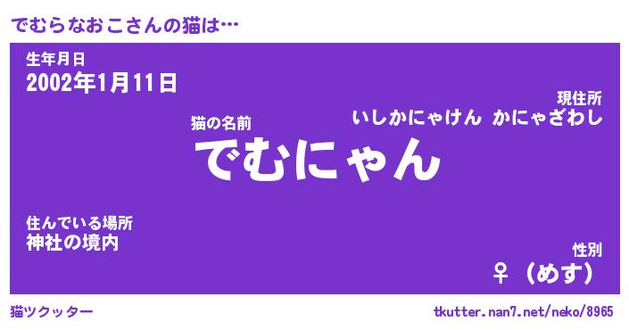 | ポケモン風あだ名 | 『デムチュウ』『デムラダネ』 |