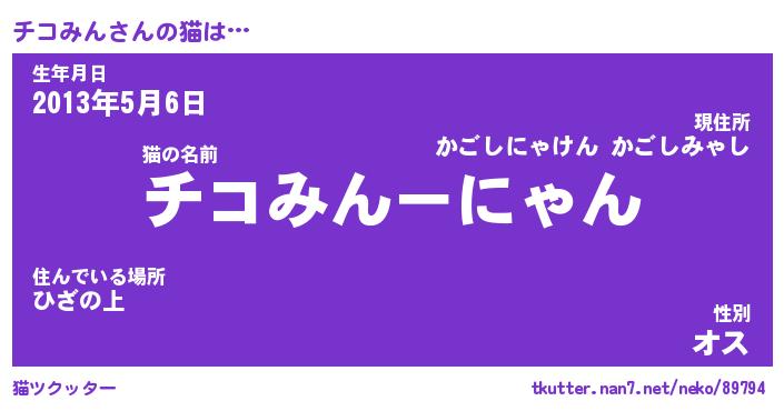 | 意味不明あだ名 | 『ペロリンチコみん』『永久保存チコみん』 |