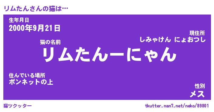 | 意味不明あだ名 | 『ペロリンリムたん』『永久保存リムたん』 |
