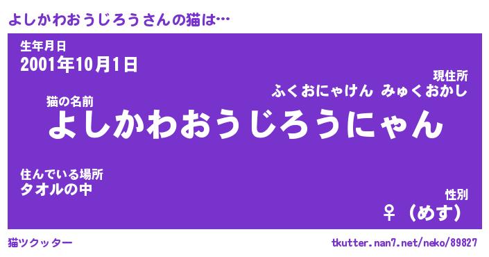 | 男性向けラノベタイトル風あだ名 | 『よしかわおうじろうの憂鬱』 |