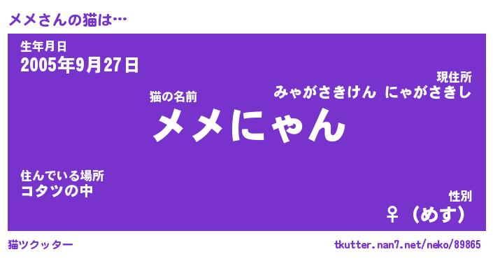 | ポケモン風あだ名 | 『メメチュウ』『メメダネ』『ヒメメ』 |