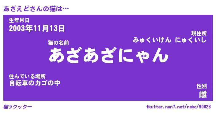 | ツイッター | あざえどさんのツイッターID『dendenmushi_nyan』 |