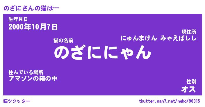 | 男性向けラノベタイトル風あだ名 | 『のざにの憂鬱』 |