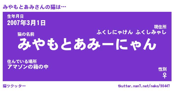 | 2回繰り返すあだ名 | 『みやみや』『みみやや』『ねばねば』 |