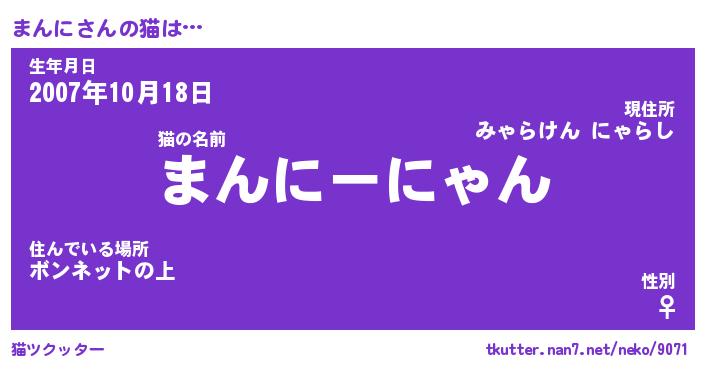| ポケモン風あだ名 | 『マンチュウ』『マンニダネ』 |