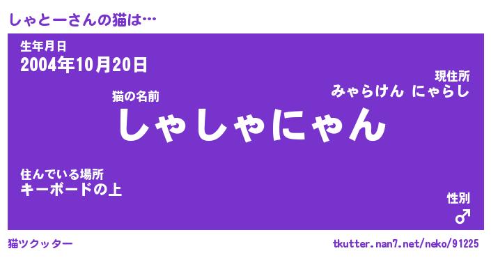 | 意味不明あだ名 | 『ペロリンしゃとー』『永久保存しゃとー』 |
