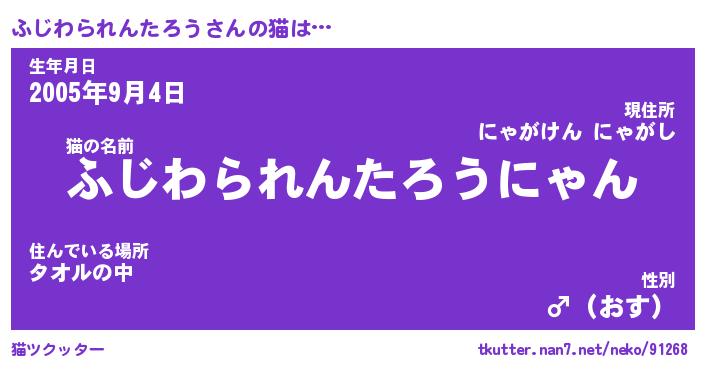 | 男性向けラノベタイトル風あだ名 | 『ふじわられんたろうの憂鬱』 |