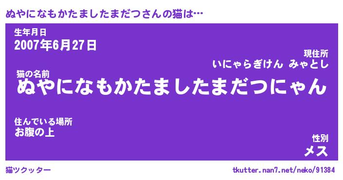 | ポケモン風あだ名 | 『ヌヤチュウ』『ヌヤニダネ』 |