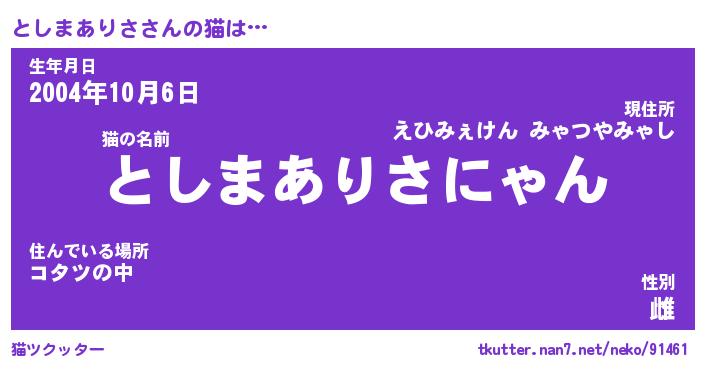 | 肩書あだ名 | 『としまありさCEO』『としまありさ副担任』 |