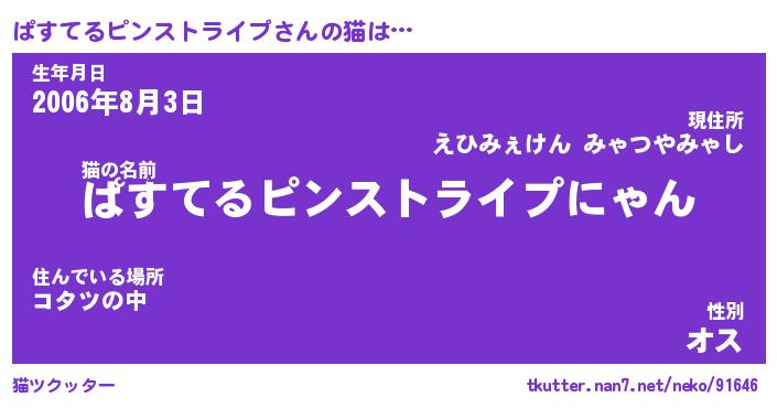 | 伝説のあだ名 | 『伝説のスナイパーぱすてるピンストライプ』 |
