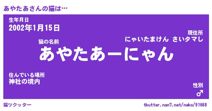 | ヒーロー風カッコイイあだ名 | 『スーパーアヤタア』『銀牙騎士アヤ』 |