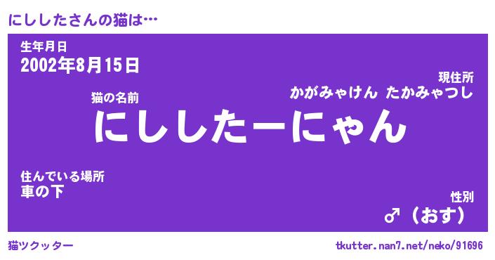 | ポケモン風あだ名 | 『ニシチュウ』『ニシシダネ』 |
