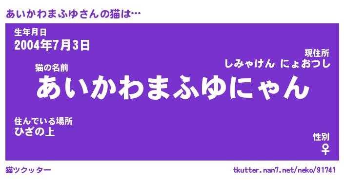 | 男性向けラノベタイトル風あだ名 | 『あいかわまふゆの憂鬱』 |