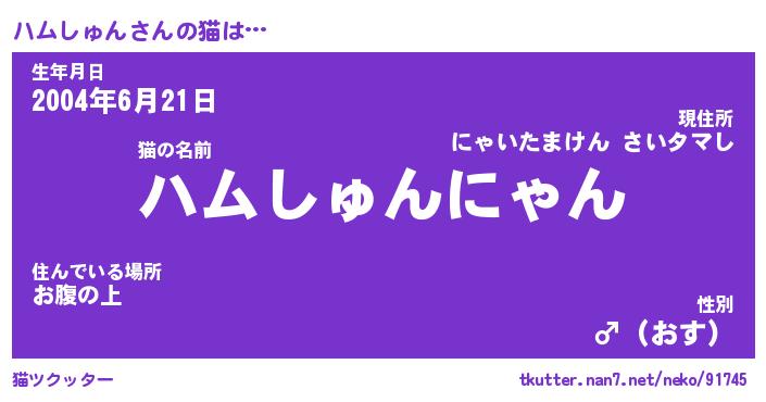 | ポケモン風あだ名 | 『ハムチュウ』『ハムシダネ』 |