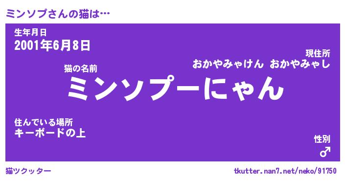 | 意味不明あだ名 | 『ペロリンミンソプ』『永久保存ミンソプ』 |