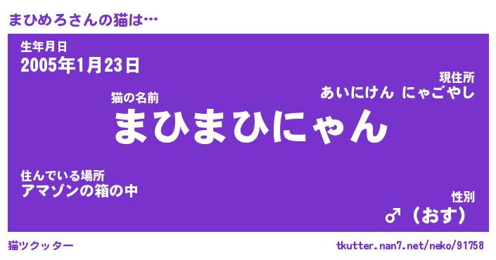 | 意味不明あだ名 | 『ペロリンまひめろ』『永久保存まひめろ』 |