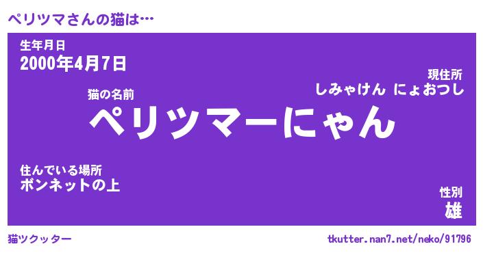 | ポケモン風あだ名 | 『ペリチュウ』『ペリツダネ』 |