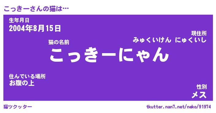 | 意味不明あだ名 | 『ペロリンこっきー』『永久保存こっきー』 |